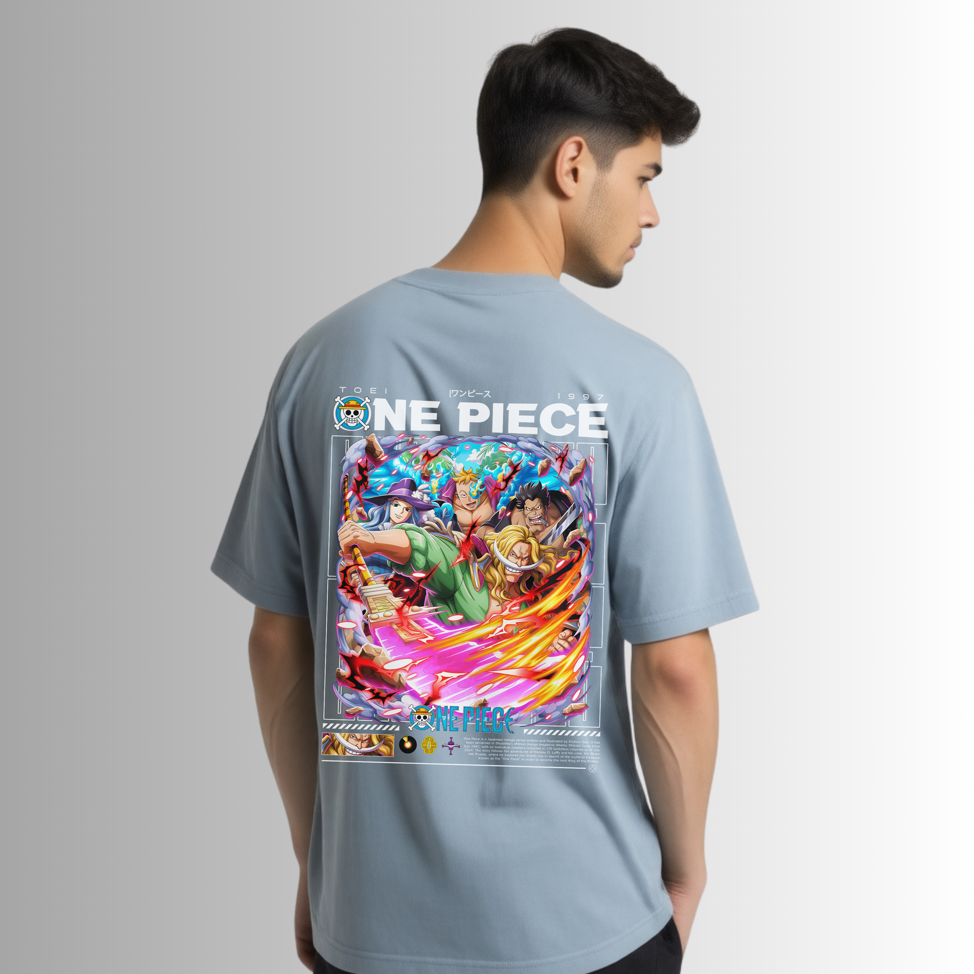 Unleash your inner pirate with the One Piece Oversized Light Purple Tee from the Zrech Anime Collection. This premium terry cotton tee features a vibrant back print showcasing iconic One Piece artwork, making it a must-have for every anime enthusiast.